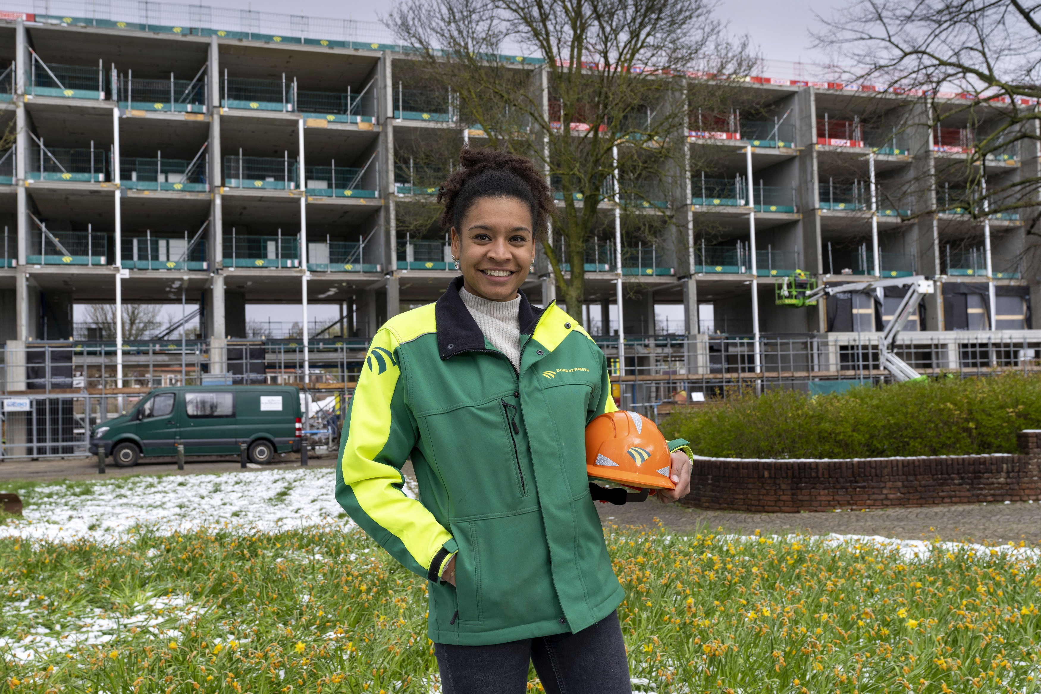 Eugény studeerde drie jaar geleden af als bouwkundig ingenieur en kon direct aan de slag bij Dura Vermeer. "Als jonge vrouw in de bouw ben je wel een beetje een vreemde eend in de bijt; je moet je plek net wat meer verdienen. Maar het is ook grappig. Leveranciers denken meestal dat ik een stagiaire ben of de werkvoorbereider. Dan lopen ze me voorbij, op zoek naar de uitvoerder. Als ik dan zeg 'dan ben je bij de juiste persoon', zijn ze vaak heel verbaasd: 'ben jíj de uitvoerder?'