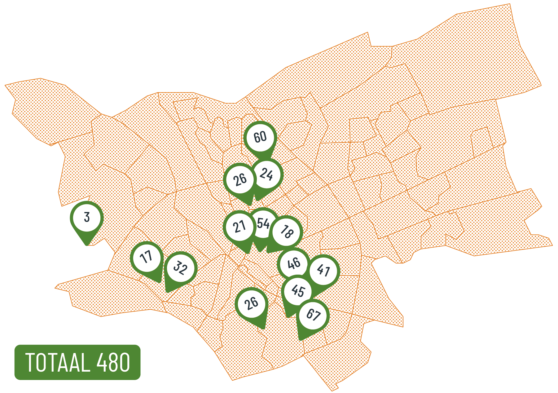 Hier voegden wij in 2023 nieuwe plekken toe voor 135 huishoudens: